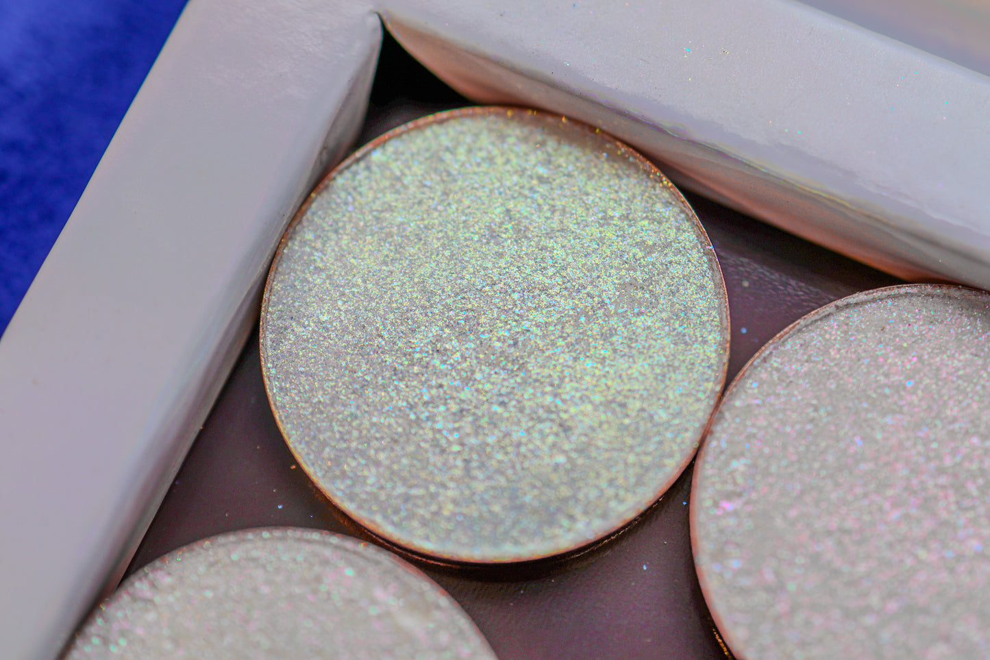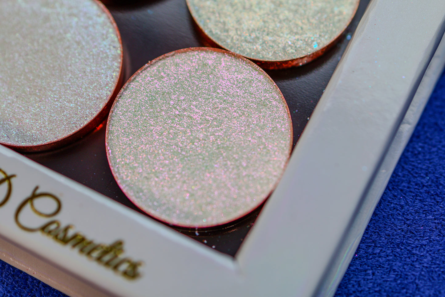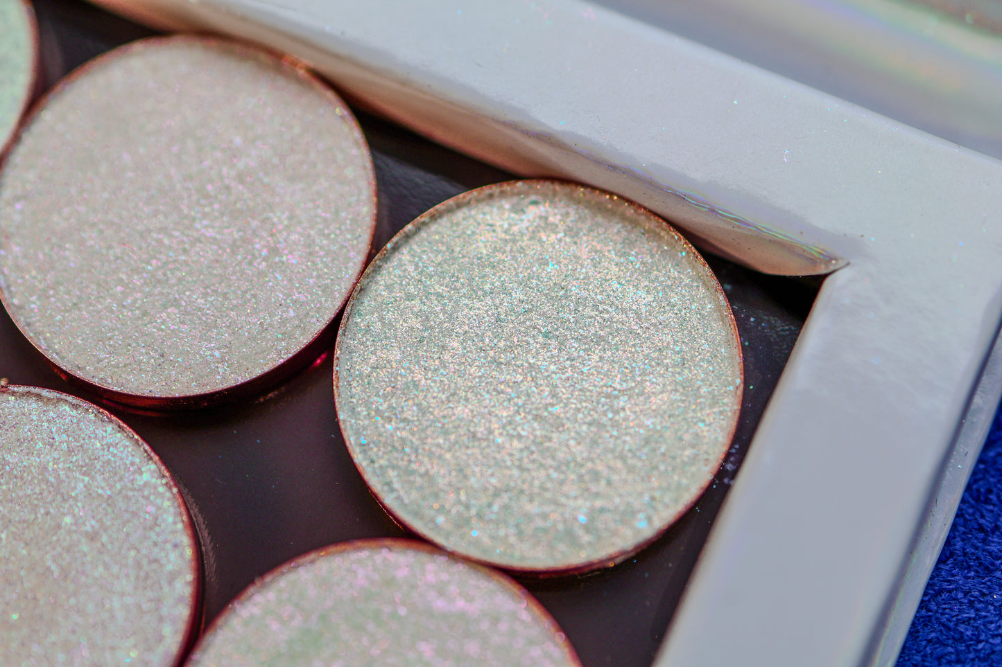 The Treasure chest palette has 6 26mm standard size eyeshadows. This pop up palette base is magnetic for easy to remove eyeshadow.